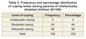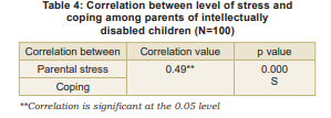 This study aimed to (1) assess stress levels among parents of intellectually disabled children, (2) determine the coping strategies among parents of intellectually disabled children, (3) assess the correlation between stress level and coping strategies, and (4) find out the association between stress level and coping strategies with selected demographic variables.