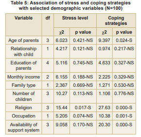 Data collection tools: These included demographic information, Parental Stress Scale, and Cope inventory tool. For analysis, both inferential and descriptive statistics were used.