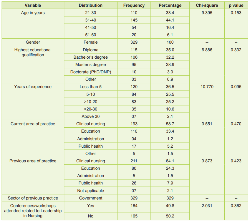 Table 1: Frequency and percentage distribution of nursing professionals according to demographic data (N=329)