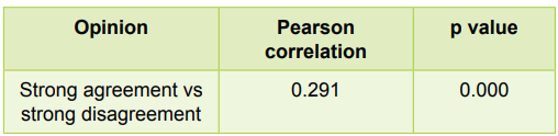The correlation between the strong agreement and strong disagreement was statistically significant (p=0.000).