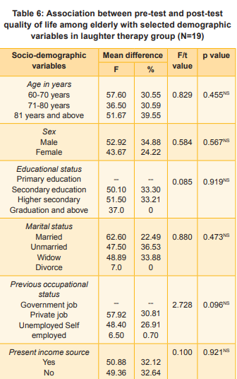 Nursing Implications: As laughter therapy is cost effective and highly impactable so it can be included in day-to-day schedules of the elderly. It can be used in day care centres.