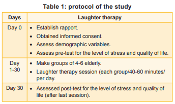 The study concluded that after laughter therapy, level of stress was reduced thus improving quality of life.