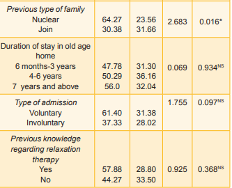 Stress-QOL association: The study undertook several variables to study the association of level of stress and quality of life among elderly. From Table 5, it is clear that, the variable ‘previous type of family’ was found significant with p-value of 0.001 (level of stress) and 0.016 (QOL).