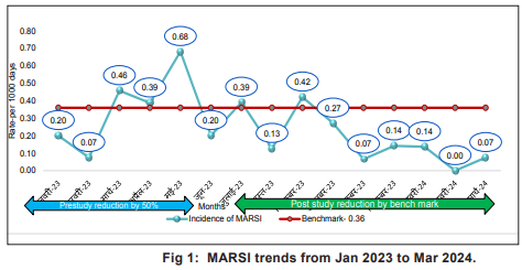 At Rajagiri Hospital, the incidence of MARSI was recorded at 0.33 per 1000 patient days, which prompted the initiation of a comprehensive Quality Improvement Project (QIP) aimed at addressing this issue. This initiative focuses on integrating the latest insights and practices aimed at reducing MARSI, ultimately improving patient outcomes and maintaining high standards of care.