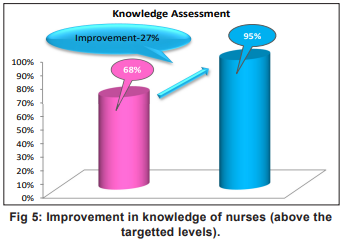Additionally, the improvement in nursing knowledge from 68 percent to 95 percent highlights the success of the targetted training programmes. These findings support the work of Earle et (2022), who reported that structured education can lead to a significant increase in healthcare professionals’ knowledge and practice.