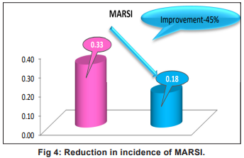 A thorough root cause analysis was performed using a Fish bone analysis & Pareto chart to identify the most significant contributors to MARSI. Findings revealed that 80 percent cause of MARSI are due to: