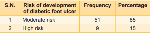 Table 4: Distribution of patients according to the risk of development of diabetic foot ulcer (N=60)
