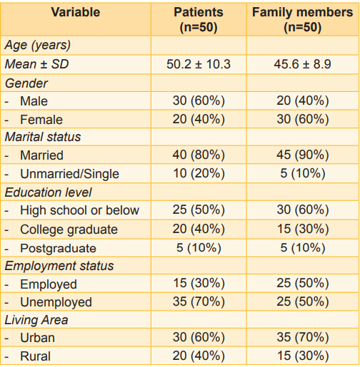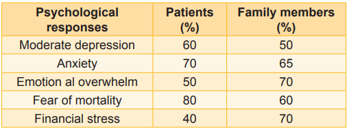 Families of cancer patients also showed significant emotional distress. Around 70 percent of family members reported feeling emotionally overwhelmed and 50 percent experiencing symptoms of depression (Table 2). Many family members expressed concerns about the burden of caregiving and financial instability.