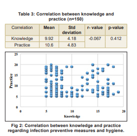 2. To determine the correlation between knowledge and practice regarding infection preventive measures and hygiene.