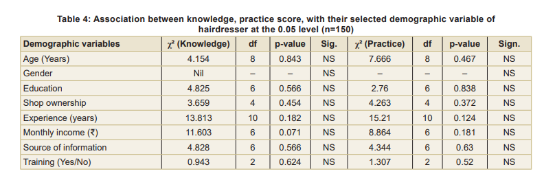 3. To examine the association between knowledge and practice scores with selected demographic variables among hairdressers.